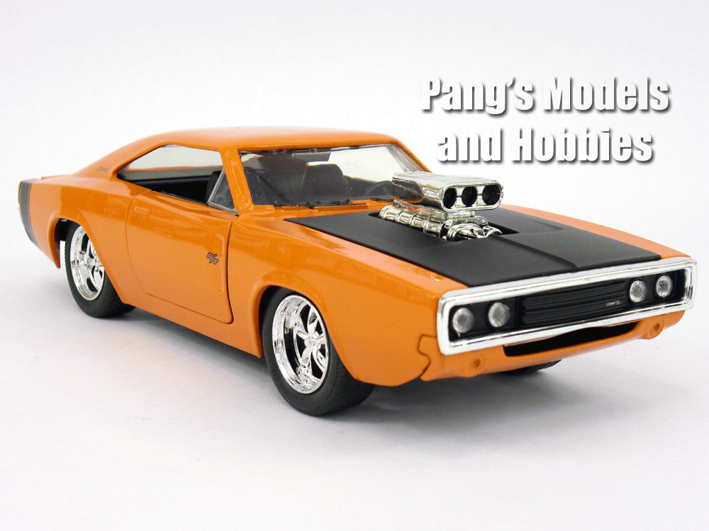 This model of the 1970 Dodge Charger is about 8 inches long, 3.25 inches wide and 2.5 inches high. It is highly detailed, with beautiful body paint and accurate markings. The headlights look quite realistic and the doors, hood and trunk can open to reveal very good interior details.